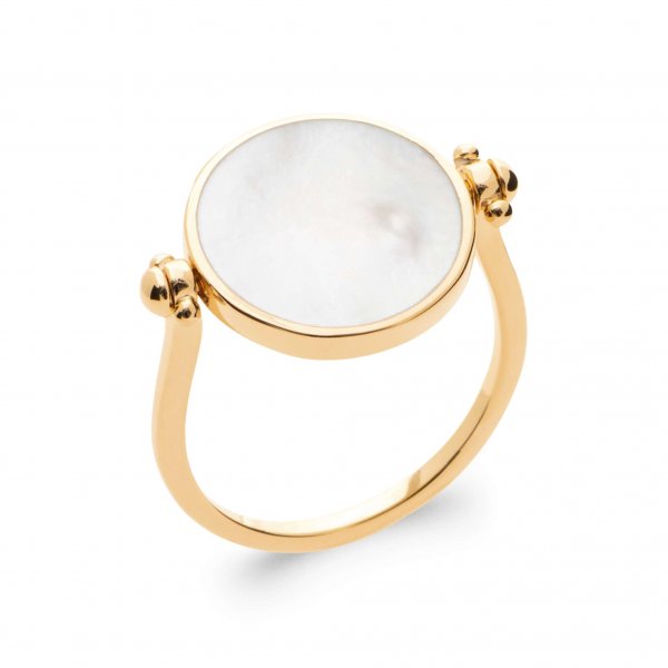 Bague Réversible Gravable Nacre Plaqué Or- Femme